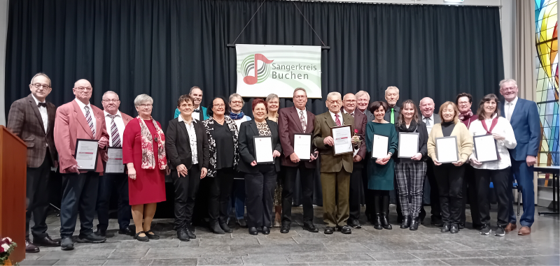 Gleich mehrere Gründe zum Feiern hatte der Sängerkreis Buchen im Joseph-Martin-Kraus-Saal in Buchen. Zum einen wurden Jubilare für langjähriges Singen sowie eine Chorleiterin für 40 Jahre Chorleitung geehrt, zum anderen wird dieser schöne Brauch bereits seit 10 Jahren gepflegt.