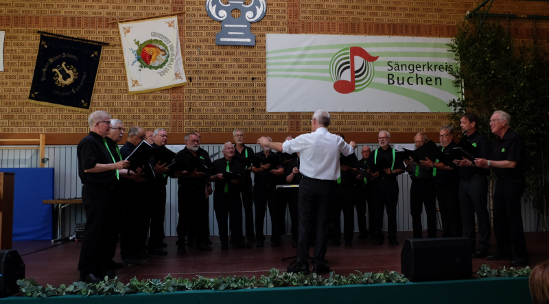 Nach den Dankesworten der Vorsitzenden des Sängerkreises Buchen, Andrea Neuser, erklang aus den Kehlen von 70 stimmgewaltigen Männern „Wir sind die Könige der Welt“ von Friedrich Silcher, dirigiert von Chorleiter Michael Wüst. Die Zuhörer dankten mit donnerndem Applaus. DS