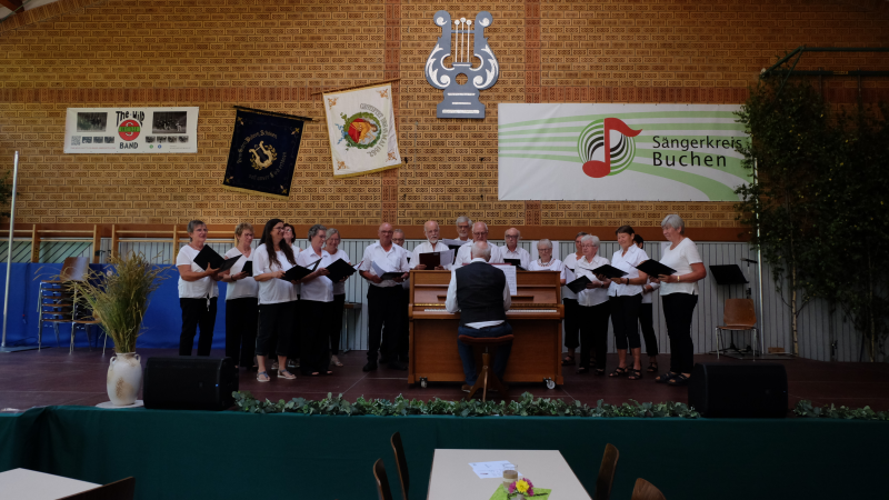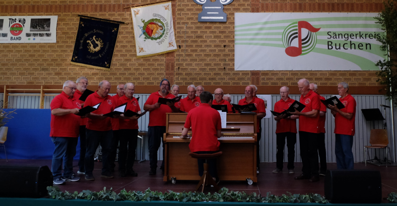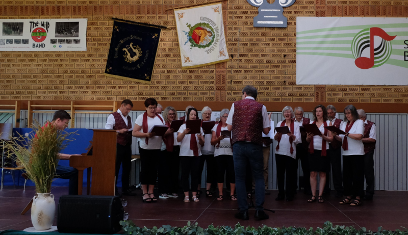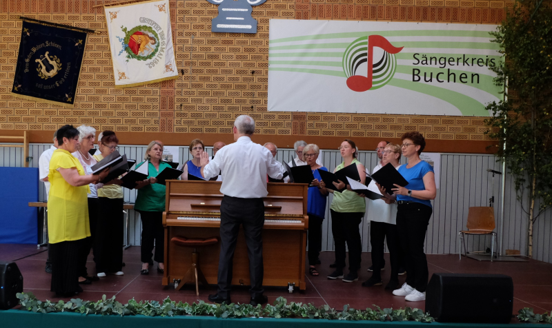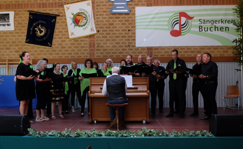 Mit der Volksweise aus Franken „Wohlauf die Luft ist frisch und rein“ eröffnete der Gastgeber, unter Chorleiter Michael Wüst und forderte auf „Lasst und das Leben genießen, lasset uns recht fröhlich sein, denn die Zeiten sie kehren nicht wieder, trinket aus, schenket ein“. Dass Lieder die besten Freunde sind und immer für dich da sind, ob in dunklen oder glücklichen Zeiten, erkannten auch die Sängerinnen und Sänger des gemischten Chores vom Gesangverein Höpfingen unter Chorleiter Gerhard Bönig und sie empfahlen „Nimm dir Zeit, werde still, wenn ein Lied erklingt“. Der Männerchor aus Hainstadt mit Chorleiter Sebastian Scheuermann wünschte sich „ An Tagen wie diesen, Unendlichkeit“ und rief sehr einfühlsam mit „Altes Fieber“ von den Toten Hosen, Erinnerungen wach, die sich anfühlten als würde die Zeit stillstehen. Die Sängerinnen und Sänger vom Gesangverein Harmonie Hettigenbeuern mit Chorleiter Werner Scheuermann hatten das Lied „Memory“ aus dem Musical „Cats“ mitgebracht und gaben mit „I will follow him“, mit Solistin Regina Eck, aus dem Musical „Sister Act“ einen Einblick in das Musicalprojekt, das anlässlich ihres eigenen 70jährigen Jubiläums einstudiert wurde. Begleitet wurden die Sängerinnen und Sänger am Klavier von Sebastian Scheuermann. Musikalische A cappella Grüße überbrachten die Sänger des Männergesangvereins „Eintracht Gerichtstetten“ mit Chorleiter Dieter Kaiser mit dem „Trinklied“. Sie erkannten, dass es immer einen Grund gibt guten Wein zu trinken, egal ob die Sonne scheint, Regen fällt oder ob es schneit. Mit der Volksweise „Wohl ist die Welt so groß und weit“ entführten sie in die Südtiroler Bergwelt. Auch der Männerchor „Cantus M“ vom Gesangverein Liederkranz Buchen mit Chorleiter Michael Wüst erkannte „Wem Gott will rechte Gunst erweisen, den schickt er in die weite Welt“ und überzeugte die Zuhörer mit „La Montanara“, gesungen in italienischer Originalsprache, als Solist glänzte Rainer Adrian. „Go with a song in your heart“ wünschten die Sängerinnen und Sänger des Gesangverein Frohsinn Mudau mit Chorleiter Gerhard Bönig und versicherten „You’ll never walk Alone“, von Richard Rogers. Die Sängerinnen und Sänger des Konzertchores Cantamus, MGV Liederkranz Buchen, entführten die Zuhörer mit „Sur le pont d’Avignon“ nach Frankreich und erkannten wie einst John Lennon & Paul McCarney mit „Can’t buy me Love“, dass man wahre Liebe nicht kaufen kann. Stimmgewaltig ging es weiter mit einem gemischten Gemeinschaftschor unter Leitung von Michael Wüst bestehend aus „Cantamus Buchen und Frohsinn Walldürn“ mit „Stimmt an der Freude Lobgesang“, ehe der gemischte Chor des MGV Frohsinn den „Frühlingsgesang“ von Rolf Herbst zum Besten gab und anschließend eine Liebesgeschichte „Im Café de la Paix in Paris“, beschrieb.