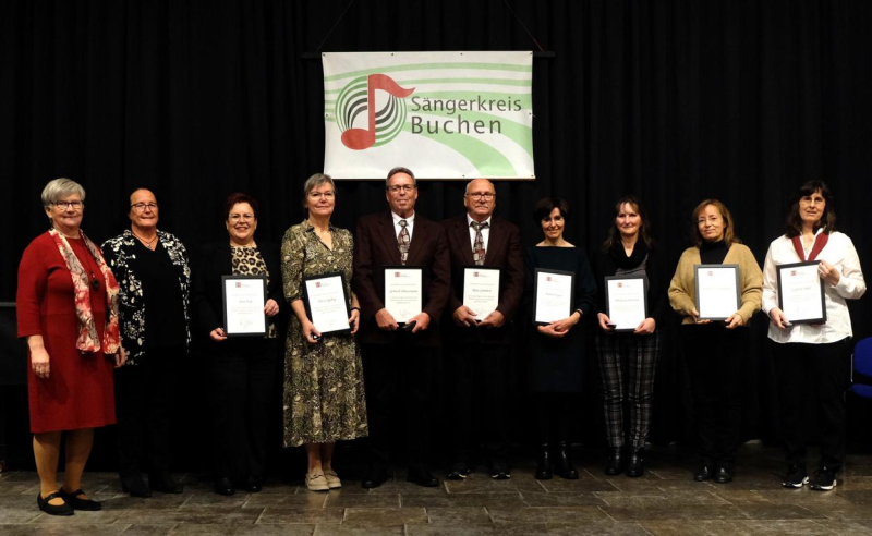 Gleich mehrere Gründe zum Feiern hatte der Sängerkreis Buchen im Joseph-Martin-Kraus-Saal in Buchen. Zum einen wurden Jubilare für langjähriges Singen sowie eine Chorleiterin für 40 Jahre Chorleitung geehrt, zum anderen wird dieser schöne Brauch bereits seit 10 Jahren gepflegt.