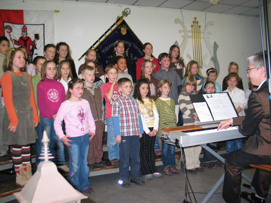 | Die vier Chöre des Gesangvereins Höpfingen im Bild 1. Der Männerchor, 1861 gegründet, hervorgegangen aus der seit 1857 nachweisbaren „Musikgesellschaft“. Er zählt heute 29 Sänger.  2. Der gemischte Chor, 1993 ins Leben gerufen, heute mit 50 Aktiven. Die Proben finden freitags 19.30 Uhr im Probelokal statt.  3. Der Chor Vocalis, 2005 gegründet, heute mit 24 Sängerinnen, probt montags von 20-21 Uhr.  4. Der Kinderchor mit Dirigentin Brigitta Scheuermann, die seit 30 Jahren den Chor leitet.  |
