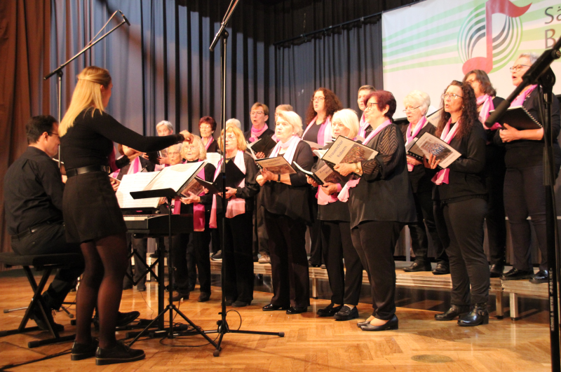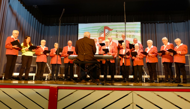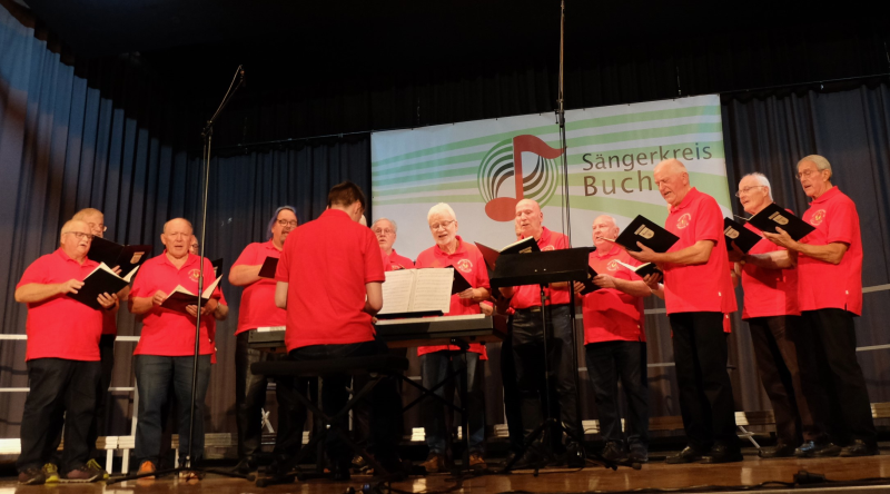 Sie sind zurück, die Chöre des Sängerkreises Buchen und können sich nach wie vor sehen und hören lassen. Davon konnte man sich am Sonntag in der Stadthalle in Buchen überzeugen. Alle Chöre versuchten sich in den vergangenen Jahren mehr oder weniger kreativ mit der Pandemie zu arrangieren. Es wurden Proben im Freien, in Werkstatthallen, Scheunen und Kirchen durchgeführt und einige Vereine hielten Kontakt durch Hausbesuche, Lieferdienste oder kleine Konzerte im Freien. Knapp 200 Sängerinnen und Sänger aus 8 Vereinen trafen sich nach 2019 erstmals wieder zum gemeinsamen Singen beim Chortreff 23. Traditionelles und modernes Liedgut, heitere und nachdenkliche Literatur, Chorsätze für Männer- und gemischte Chöre sowie Gemeinschaftschöre wechselten sich ab. Die individuelle Moderation wurde von Sängerinnen und Sängern des Gastgebers MGV Liederkranz Buchen übernommen.