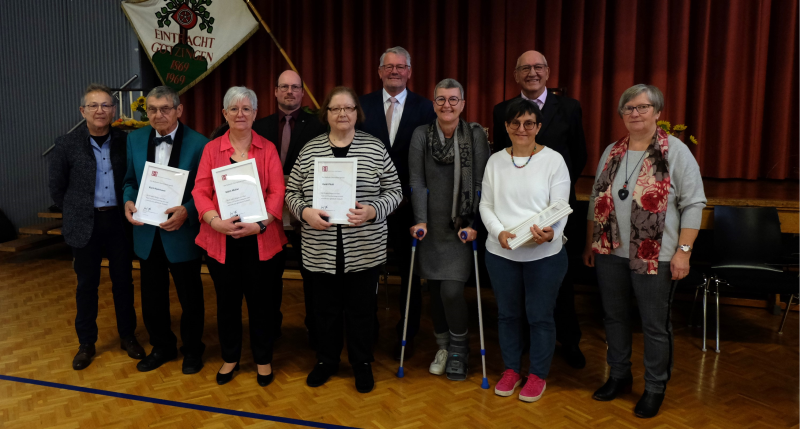 Die Ehrung für 50 Jahre Singen wurde vom stellvertretenden Vorsitzenden Peter Schäfer vorgenommen. Die Urkunde und Ehrennadel des Deutschen Chorverbanden wurde an folgende Jubilare überreicht.