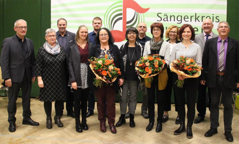 Kurt Hartmann, Gesangverein Frohsinn Waldstetten; Judith und Stefan Heinickel, Anja Hess, Edith Müller, alle Gesangverein Eintracht Götzingen; Heidi Pfohl, Iris Lutz und Andrea Schweitzer, Gesangverein Liederkranz Hardheim; Bernd und Jürgen Schretzmann, Gesangverein Eintracht Gerichtstetten sowie Susanne Berrezouga vom Gesangverein Liederkranz Buchen.