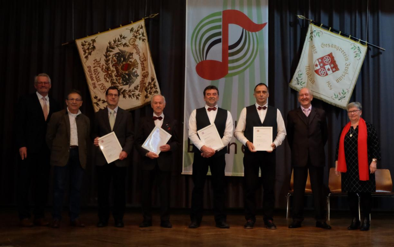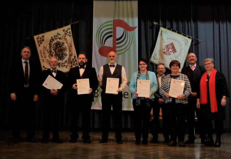 Bernd Lauer, MGV Altheim; Susanne Ferschel, MGV Liederkranz Buchen; Bernhard Müller, MGV Eintracht Gerichtstetten; Michael Rein, Andrea Schäfer und Monika Schmitt vom Gesangverein Götzingen; Pia Sachweh, Gesangverein Höpfingen; Harald Grimm, Wolfgang Radauscher und Stefan Schäfer, Gesangverein Frohsinn Mudau; Roland Baier, MGV Schloßau.