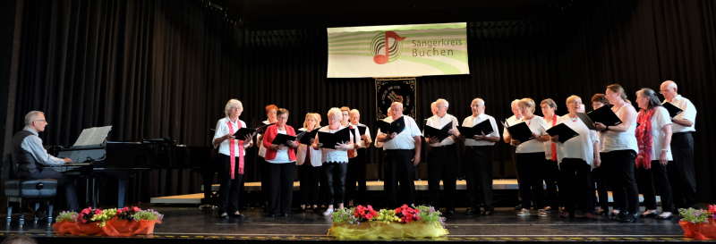 In seinem Grußwort bestätigte der Bürgermeister der Stadt Buchen, Roland Burger, der auch im Namen von Landrat Dr. Achim Brötel sprach, dass Singen und Musik Balsam für Seele und Körper sind und wünschte weiterhin viel Freude zur Erhaltung der Gesundheit. Die Männer des MGV Altheim ließen die Volksweise „Und wieder blühet die Linde“ von Kurt Lissmann sowie das kroatische Volkslied „Kad si bila mala mare“ erklingen. Die größte Veränderung hatte der Gesangverein Harmonie Hettigenbeuern in den letzten vier Jahren zu verzeichnen. Mit ihrem neuen Chorleiter Werner Scheuermann entführten die Sängerinnen und Sänger in die 60er und 70er Jahre mit „Für mich soll’s rote Rosen regnen“ und „Aux Champs-Èlysèes“ und erzeugten bei so manchem Zuhörer Herzklopfen. Begleitet wurden sie von Benjamin Scheuermann am Flügel. Entgegen dem Trend konnte der MGV Eintracht Gerichtstetten unter Leitung von Dieter Kaiser während der letzten Jahre neue Chormitglieder gewinnen. Die Männer überzeugten nicht nur mit ihrem neuen Outfit sondern auch mit dem einfühlsam vorgetragenen „Musik erfüllt die Welt“ und bei „Wie lieblich schallt durch Busch und Wald“ nach einem Satz von Heinrich Poos konnte man das Echo förmlich spüren. Der gemischte Chor des Gesangverein Eintracht Götzingen unter Leitung von Regina Rein erkannte in dem Lied „Lieder“ von Udo Jürgens, dass Lieder unentbehrlich sind, Mut machen und himmelwärts tragen können. Eindrucksvoll und sehr gefühlvoll folgte „Übern See“ von Lorenz Maierhofer. Schwungvoll präsentierten die Sängerinnen und Sänger des Gesangverein Höpfingen unter Leitung von Gerhard Bönig „Mit Gesang und guter Laune“ sowie „Das Leben kann so schön sein“ von Dieter Frommelt. Der gemischte Chor des MGV Frohsinn Walldürn unter Chorleiter Michael Wüst entführte die Zuhörer nach Wien. Mit „Im Prater blüh‘n wieder die Bäume“ nach einem Satz von Hans-Dieter Kuhn und „Wien, Wien, nur du allen“, nach einem Satz von Michael Wüst weckten sie bei vielen Besuchern Urlaubserinnerungen.
